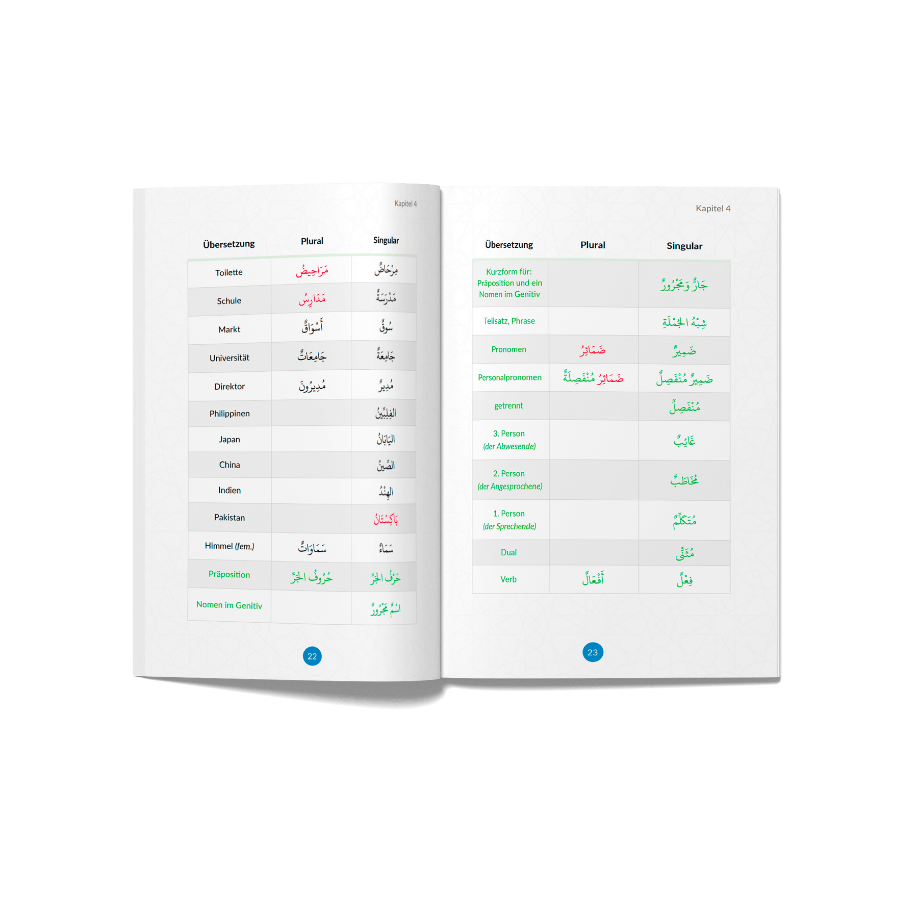 Unser Vokabelbuch zum ersten Medinabuch enthält knapp 500 Vokabeln in Singular- und Pluralform und ergänzt sie durch hilfreiches grammatisches Zusatzvokabular.
